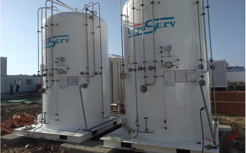 該方艙醫院的氧氣主要供應源采用兩個五立方液態氧儲罐供氧。