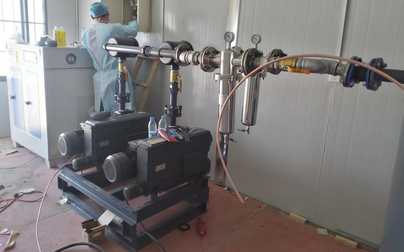 真空負壓吸引系統機組選用油潤旋片式真空泵,加裝管道除菌過濾器和排氣高溫消毒滅菌設備。
