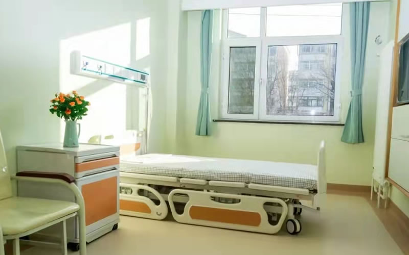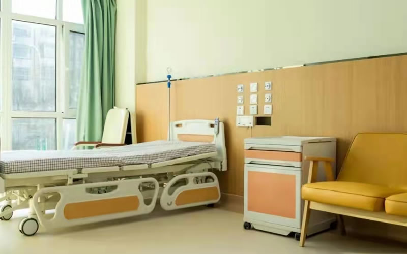 獨(dú)立普通單間床頭安裝兩米的醫(yī)用設(shè)備帶,配有氧氣終端、吸引終端、呼叫器和配電照明設(shè)備。