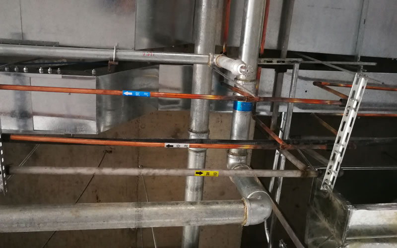 中心真空負壓吸引系統管道采用無縫脫脂304不銹鋼管,氧氣和空氣管道采用脫脂無縫紫銅管。