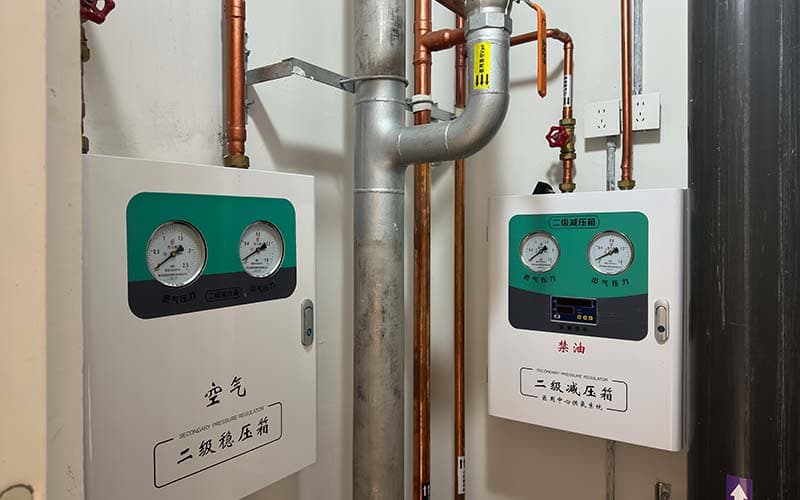 實(shí)時壓力監(jiān)控:箱體配置高精度壓力表(輸入、輸出各一),便于醫(yī)護(hù)人員或維保人員實(shí)時監(jiān)測系統(tǒng)壓力狀態(tài),及時發(fā)現(xiàn)異常。