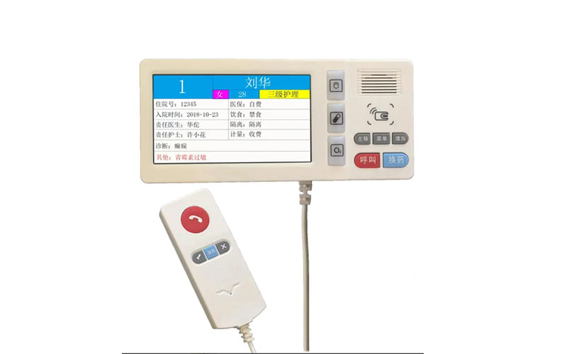 5 寸液晶顯示責任醫生、責任護士、患者姓名、病情等相關信息;