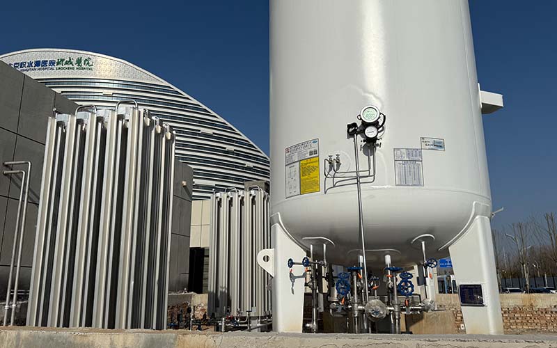 工作原理是通過槽車外購液態氧,儲存于醫院真空絕熱儲罐,經汽化調壓后輸送至管網。其供氣可靠性高,儲罐容量可滿足數日至數周用量;氧氣純度穩定在99.5%以上,符合醫用標準;需設置符合安全規范的儲罐區,并依賴外部氧氣供應鏈的穩定性。