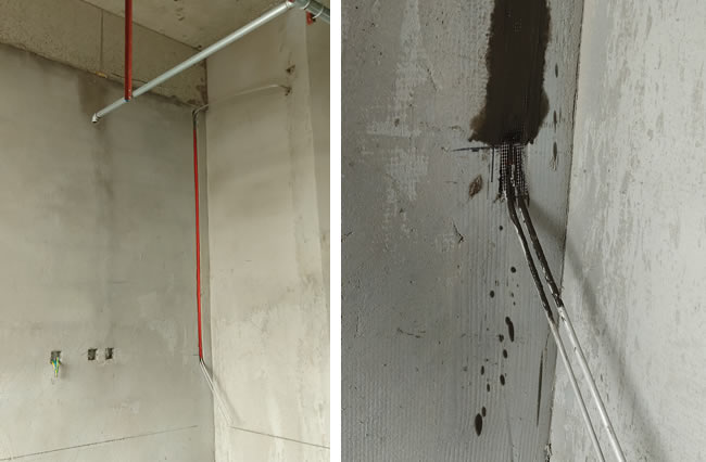 明管加裝飾罩的中心供氧管道安裝方式很好理解,根據(jù)醫(yī)用氣體工程技術(shù)規(guī)范的要求,氣體管道是不允許預(yù)埋到墻里面的,其目的是預(yù)防墻體內(nèi)管道破裂漏氣以及考慮將來檢修維修方便。上方左圖為某縣級人民醫(yī)院病房裝修改造醫(yī)用氣體工程,病房內(nèi)棚頂至設(shè)備帶中心供氧管道和中心負(fù)壓吸引管道采用明管裝飾罩的方式。右圖為某正常營業(yè)中鄉(xiāng)鎮(zhèn)衛(wèi)生院中心供氧管道,和醫(yī)用中心負(fù)壓吸引管道天花板至設(shè)備帶的氣體管道安裝效果。