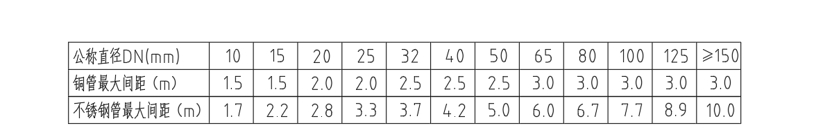 醫用氣體管道中我們常常會用到醫用紫銅管和304不銹鋼管,如有甲方要求也可用鍍鋅鋼管。紫銅管管徑Φ8~Φ133可供選擇,常見的進病房管道用的就是Φ8的紫銅管。不銹鋼管管徑Φ6~Φ325可供選擇。那么我們在醫用氣體管道工程中,安裝前,我們需要核對好項目所需管道管徑——管道走向——管道在現場的定位——勘測管路安裝路線并確定管路的安裝位置——制作、安裝管道支架。下圖為管道安裝表: