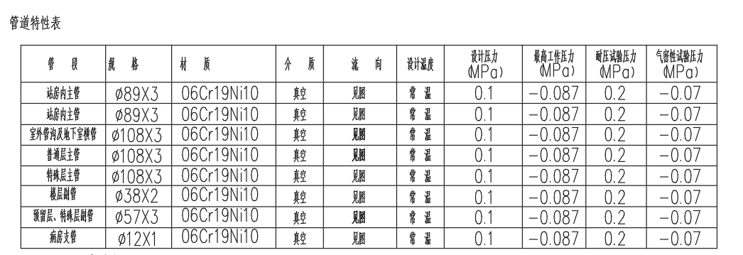 管道特性表: