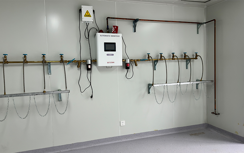 3、供氧系統氧氣匯流排系統設置了氧氣欠壓聲光報警裝置,且可實現供氧的自動或手動切換。氧氣瓶內的壓力低,而且控制裝置的操作簡單易學,方便操作,可以隨時調節所需要的壓力。可不間斷的持續的進行供氧。