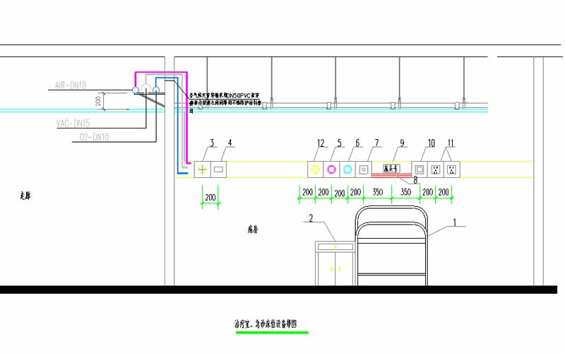 終端設(shè)備的設(shè)計要與醫(yī)療設(shè)備帶協(xié)調(diào)配合,標高標注要精確到±0.01米,快速插拔接頭的類型也要明確標注。
